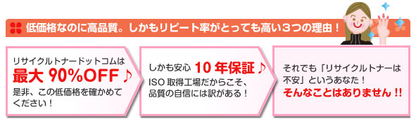 安心対応。高品質なトナーが業界最長クラスの10年保証!リサイクルトナードットコム
